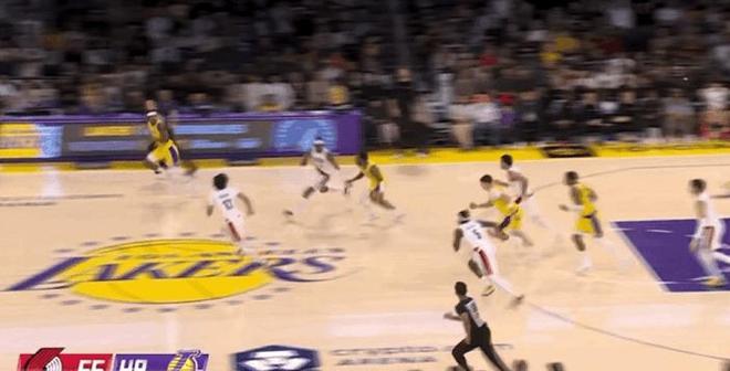 格蘭特成功上分,阿夫迪亞滑翔上籃,韋斯利不斷地沖擊籃筐進(jìn)行反擊,而湖人以38-37分暫時(shí)領(lǐng)先。